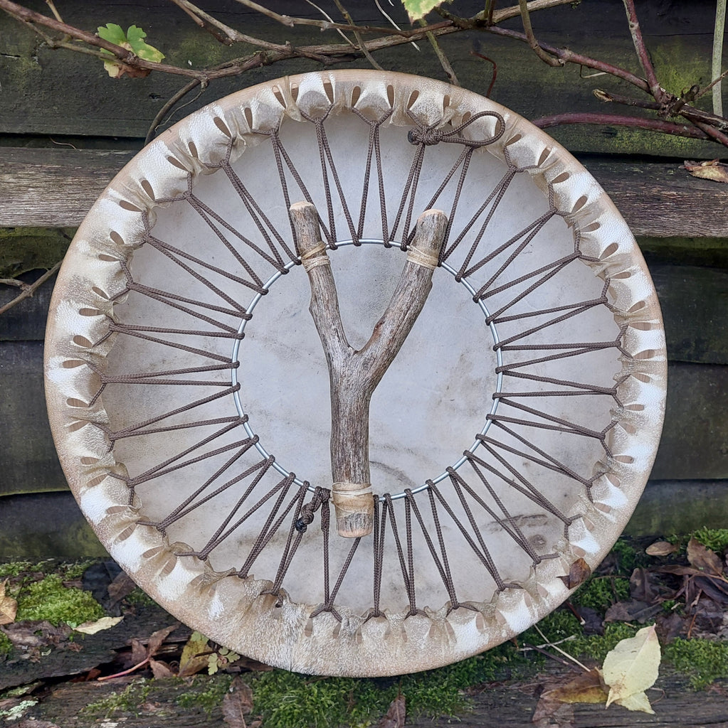 Tambours Chamaniques de fabrication artisanale. Peaux de cerf, cheval ou veau. Cadres en frêne massif cintré à la vapeur.