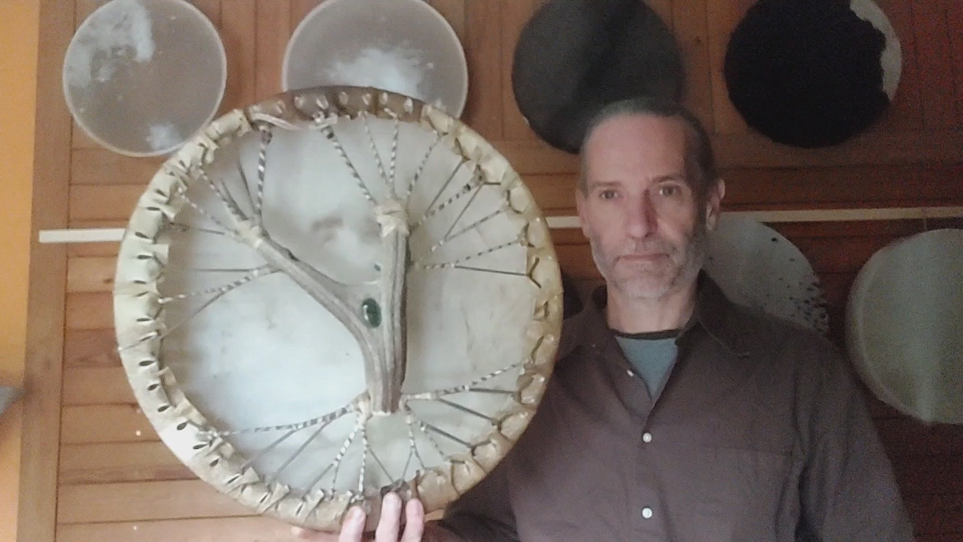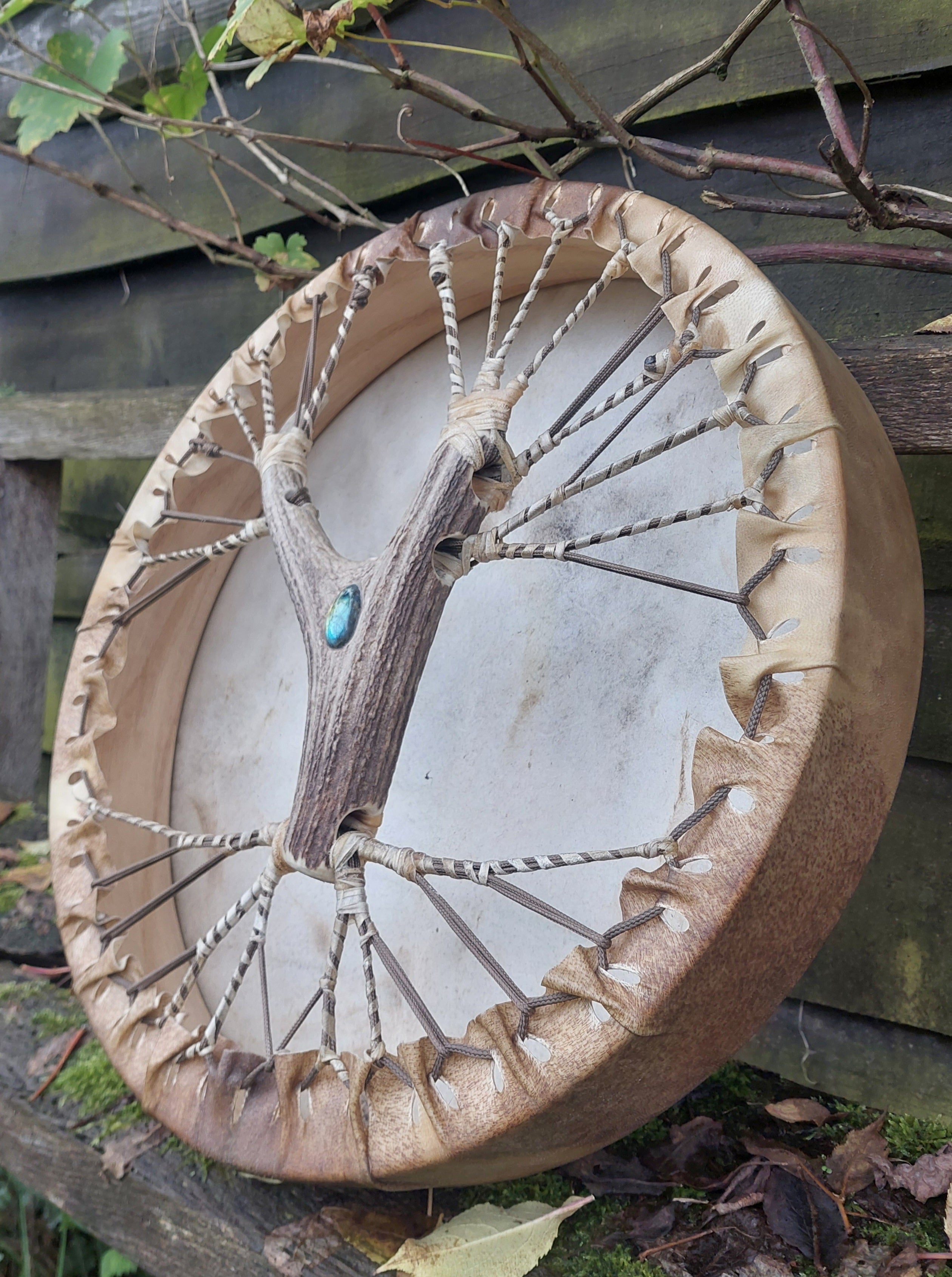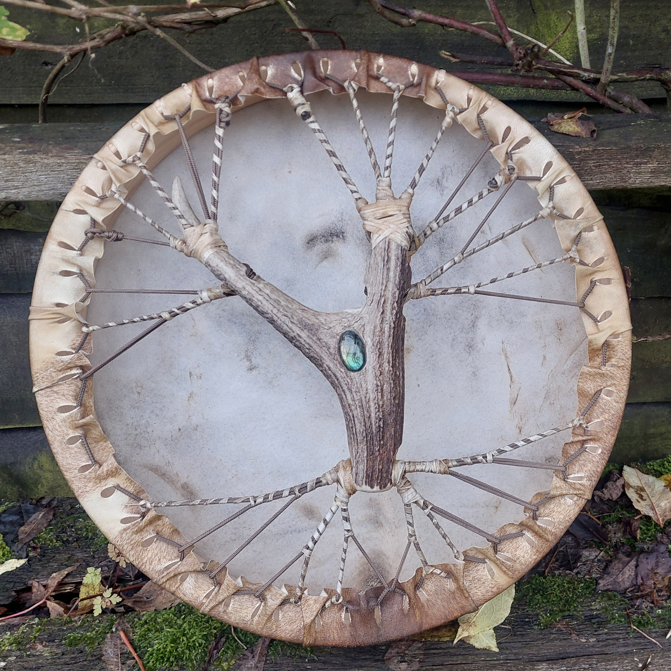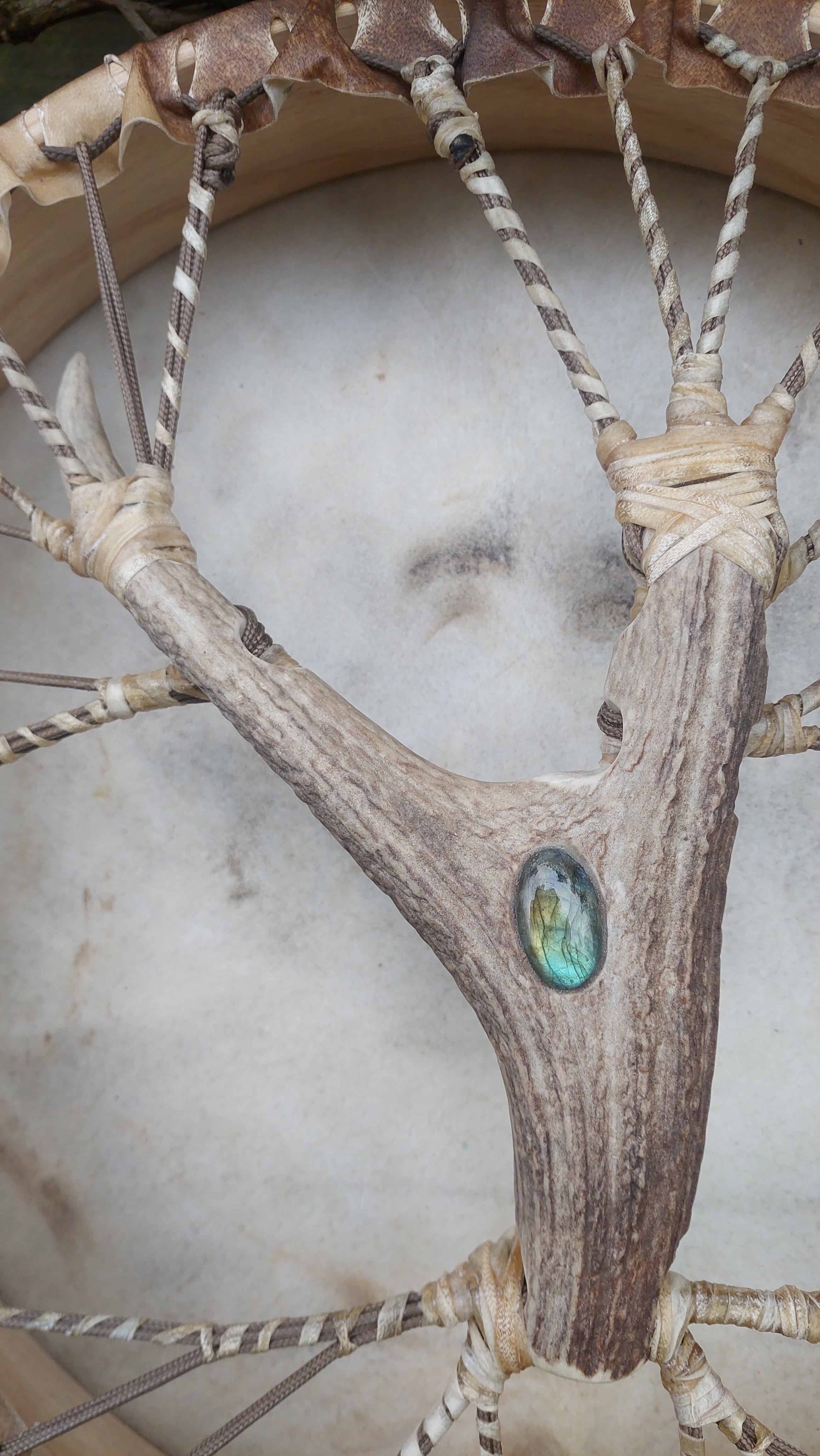 Tambour chamanique Arbre de Vie, peau de cerf & Labradorite.