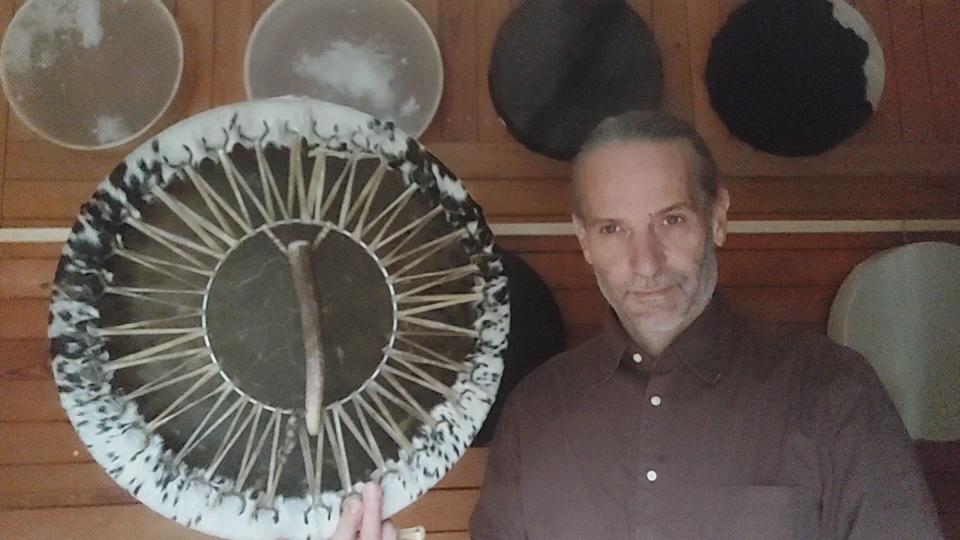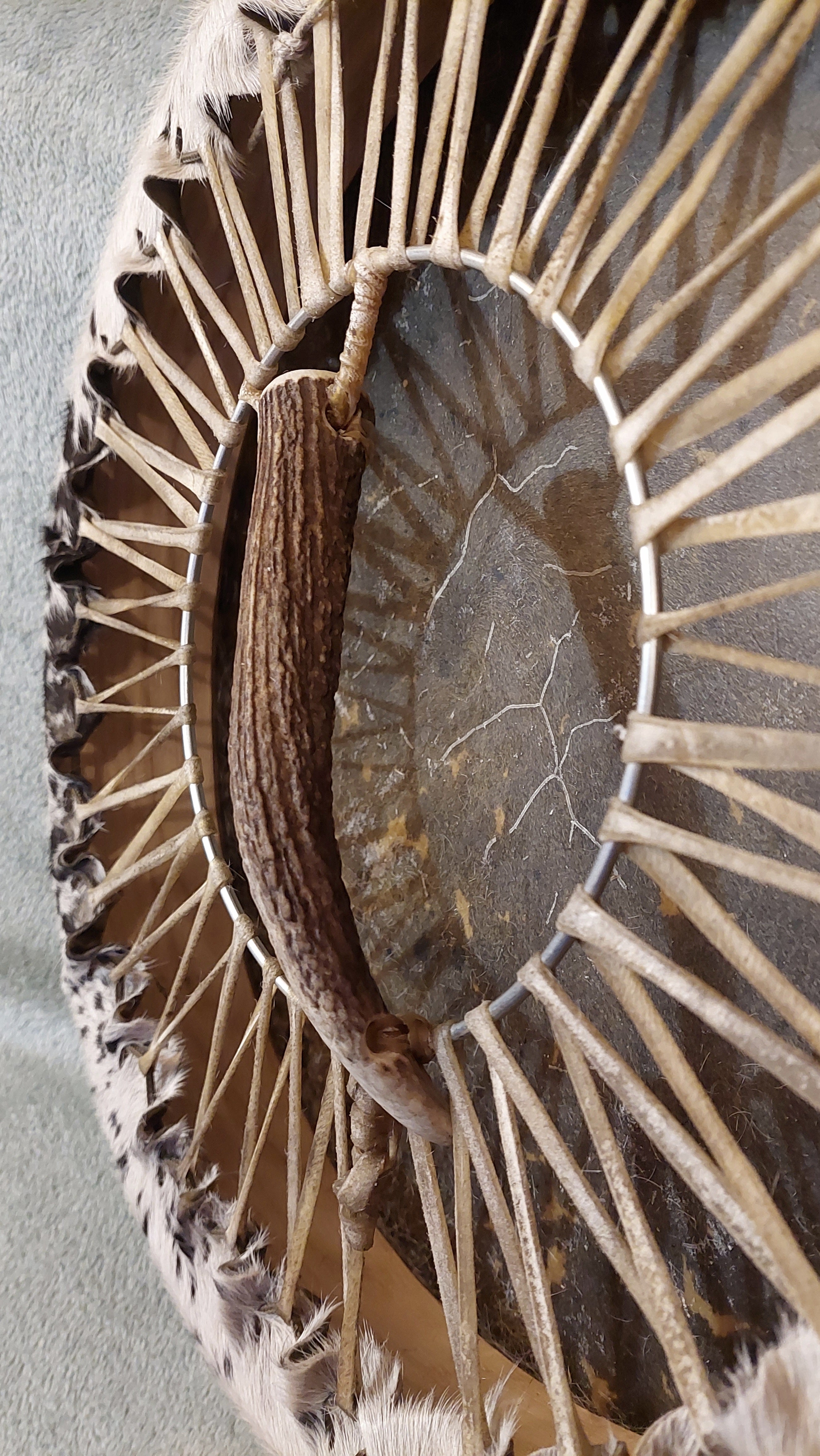 Tambour Chamanique, peau épaisse de cheval blanc tacheté (45cm)